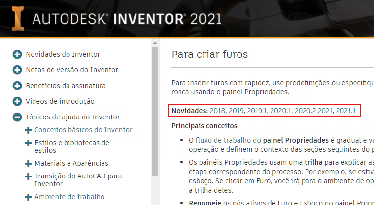 Além disso, quando você usar F1 para acessar uma página da Ajuda (se aplicável), verá na parte superior da página os vínculos para o tópico Novidades explicando a alteração na operação ou no comando.