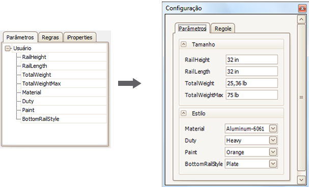 Crie e conecte uma interface de usuário personalizada para os parâmetros, propriedades e regras de uma peça, montagem ou documento de desenho do Inventor.