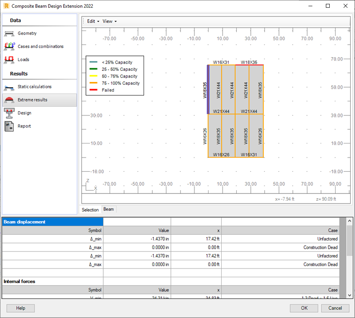 - Para reações: ID do nó onde ocorre o valor mínimo/máximo.