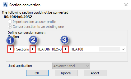 Use-a para transferir para o Advance Steel uma seção do Robot como uma seção do usuário.