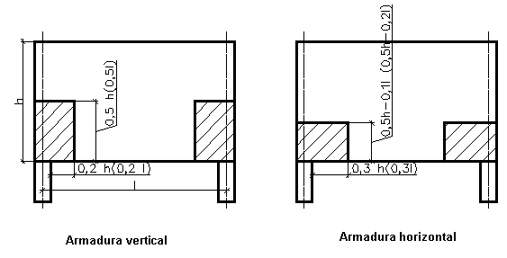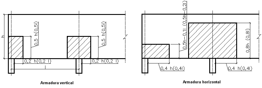 O valor entre parênteses é para h ≥ ln, em que ln indica uma distância clara entre os apoios.