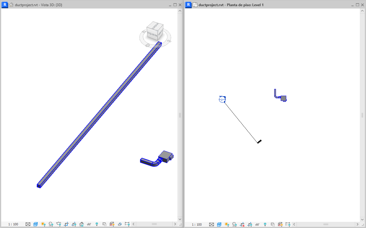 No seguinte projeto de amostra, você deseja adicionar dutos para conectar segmentos no nível 1 para os dutos no nível 2.