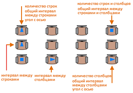 После выбора объектов, которые нужно скопировать (они называются исходными объектами), необходимо задать способ их расположения. Имеется три типа массивов.