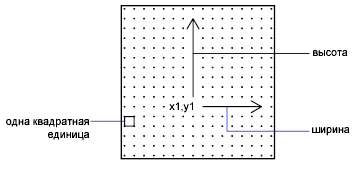 На следующем чертеже представлен пример матрицы 16 x 16 точек, которую можно использовать для создания расширенного крупного шрифта (например, иероглифов). Расстояние между точками матрицы равно одной единице. Стрелка от выноски указывает на единичный квадрат.