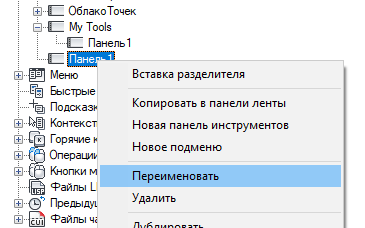 Будет создана новая панель инструментов (с именем "Панель1"), а в нижней части выбранной пользователем панели инструментов будет помещено всплывающее меню, ссылающееся на созданную панель инструментов.