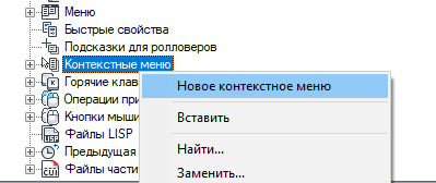 - На вкладке "Адаптация" панели "Адаптации <имя файла> щелкните правой кнопкой мыши узел "Контекстные меню" и выберите "Новое контекстное меню".