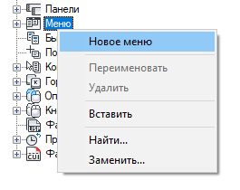 На вкладке "Адаптация" панели "Адаптации: <имя файла>" щелкните правой кнопкой мыши узел "Меню". Выберите "Новое меню".