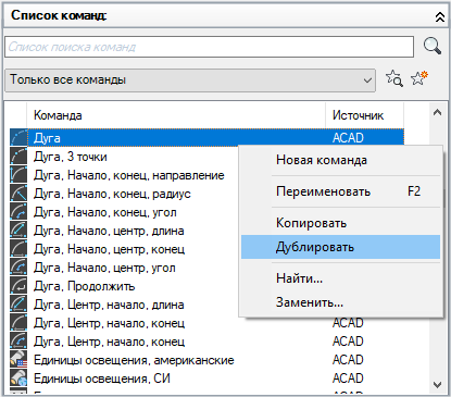 Прим.: Для контекстного дублирования команды можно использовать сочетание клавиш CTRL + D.