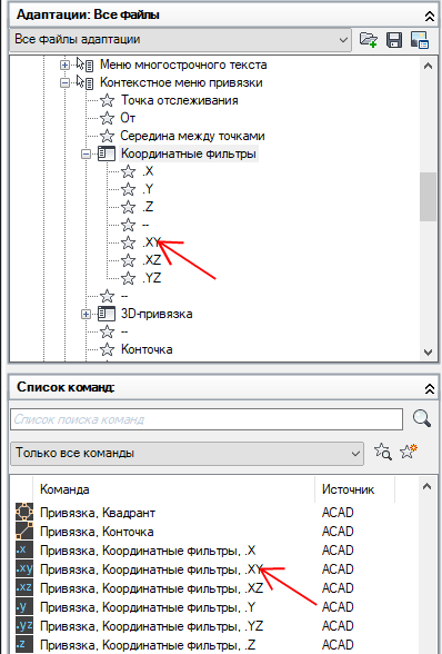 В результате фильтрации в списке отображаются только те пользовательские команды, которые были добавлены в загруженные файлы адаптации.