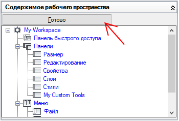 На панели "Компоненты рабочего пространства" нажмите кнопку "Готово".