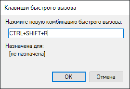 - Чтобы назначить комбинацию клавиш и закрыть диалоговое окно "Клавиши быстрого вызова", нажмите "OK".
