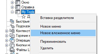 Аналогичным образом добавьте во вложенное меню остальные необходимые команды.