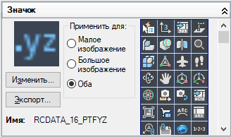 На вкладке "Адаптация" на панели "Список команд" или "Адаптации <имя файла> выберите команду для отображения панели "Значок".