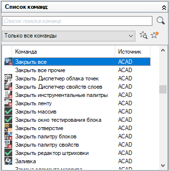 На вкладке "Адаптация" на панели "Список команд" выберите команду, из которой требуется удалить дескриптор.