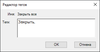 В поле "Теги" диалогового окна "Редактор тегов" введите дескриптор команды.