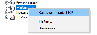 Прим.: Узел «Файлы LISP» доступен только в AutoCAD.