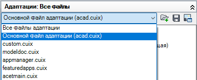 - На вкладке "Адаптация" панели "Адаптации: <имя файла>" выберите в раскрывающемся списке файл CUIx.
