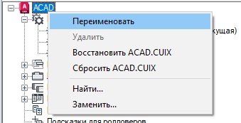 Прим.: Можно выполнить возврат к исходному состоянию только для файлов адаптации CUIx, находящихся в папке UserDataCache, вложенной в папку установки программы.