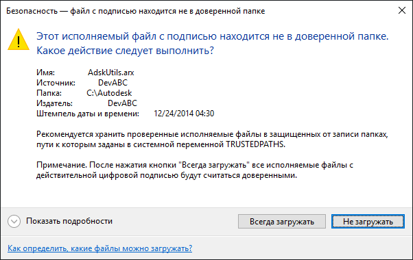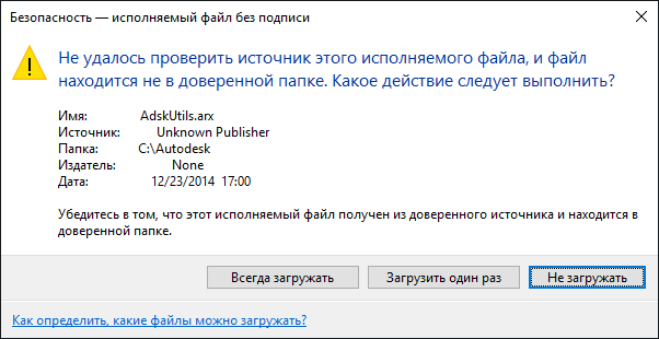 Решение. Загрузите и используйте файл. (Необязательно) Можно указать издателя в качестве доверенного, чтобы при последующей загрузке файлов с подписью этого издателя сообщение с предупреждением не отображалось.