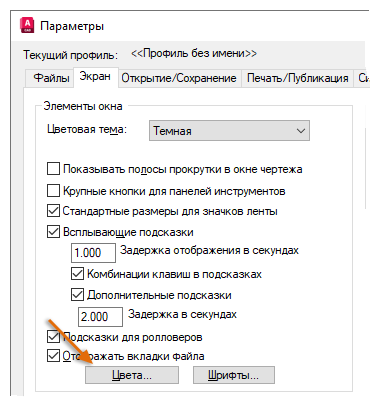 Параметры данной вкладки служат для пользовательской настройки программы. Используйте вкладку «Построения», чтобы изменить цвета и шрифт, используемые в окне команд.