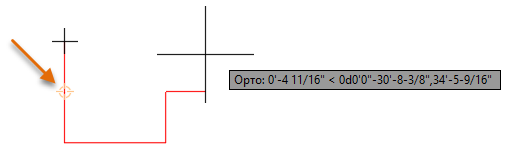 Использование последнего значения: когда команда активна, нажимайте клавиши со стрелками вверх или вниз, чтобы прокручивать недавно использованные значения в тех же или аналогичных окнах подсказок. При перемещении между значениями координат в чертеже появляется обозначение, которое указывает на точку координат.