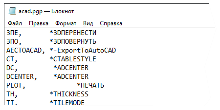 Совет: Используйте псевдонимы команд, чтобы сократить время их запуска; вместо поиска команды в пользовательском интерфейсе с помощью указателя мыши можно оставить его в области рисования в состоянии готовности к вводу данных. Псевдоним является сокращенным названием команды, состоящий чаще всего из одной или двух букв. В списке вариантов автозавершения псевдонимы отображаются с указанием в скобках команды, которая будет запущена. Полный список псевдонимов всех команд можно посмотреть и распечатать, выбрав вкладку Управление > панель «Адаптация» > Редактировать псевдонимы > Редактировать псевдонимы.