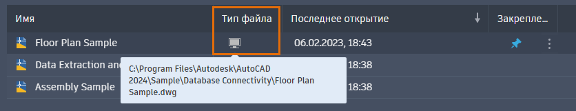 - Выбрав один из видов, наведите курсор на значок «Тип файла», чтобы отобразить путь к исходному файлу.
