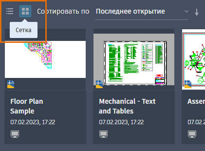- Выберите вид сетки, в котором отображаются миниатюры и текст, или вид списка, в котором отображается только текст, над документами.