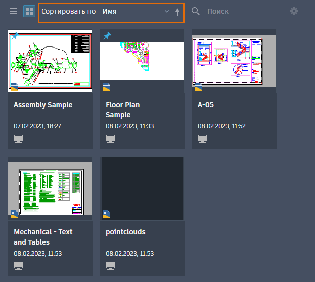 - Вид сетки: выберите требуемый способ сортировки. Щелкните вертикальную стрелку справа от метода сортировки, чтобы инвертировать порядок сортировки.