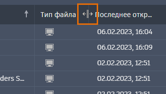 Чтобы настроить ширину столбцов, перетащите вертикальную полосу между их заголовками.
