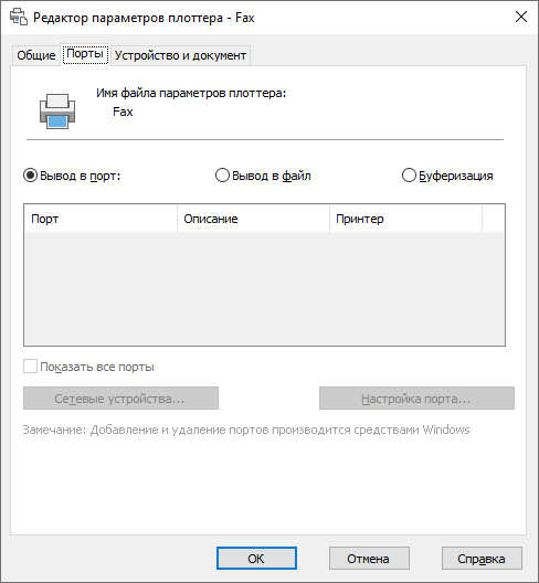 Показ всех доступных портов на компьютере, вне зависимости от того, доступны ли они для плоттера.