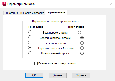 Задание точки прикрепления для выносных линий и многострочных аннотаций. Параметры доступны, только если для аннотации выбран многострочный текст.