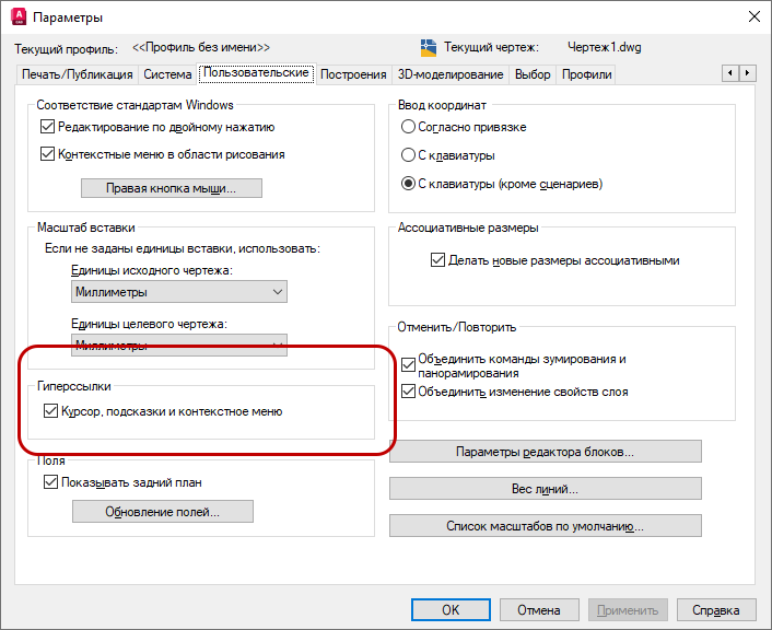 Включите отображения информации о гиперссылке на вкладке "Пользовательские установки" диалогового окна "Параметры".