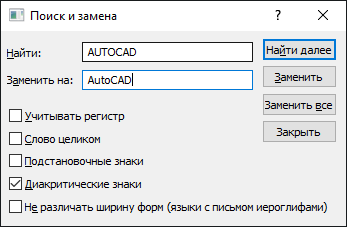 МТЕКСТ (команда) найти: выберите «Поиск и замена» в текстовом редакторе или в меню быстрого вызова МТЕКСТ.