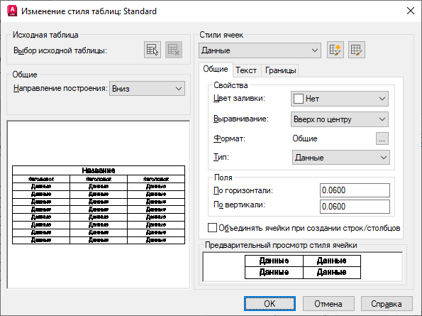 Этот параметр позволяют выбрать на чертеже таблицу для применения в качестве образца при форматировании данного стиля таблиц. После выбора таблицы можно указать элементы структуры и содержимого, которые требуется скопировать из этой таблицы в стиль таблиц.