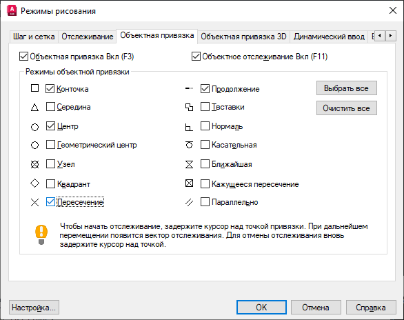 Управление включением или отключением всех указанных режимов объектной привязки. (системная переменная OSMODE)