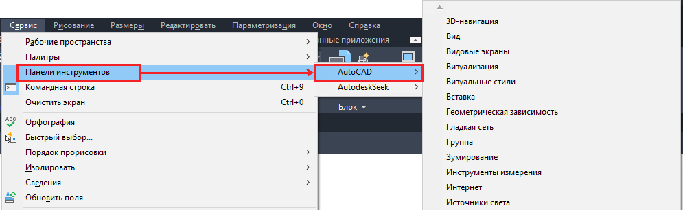 и выберите нужную панель инструментов.