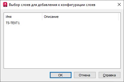 Отображает имя и описание слоев, которые не были добавлены в конфигурацию слоев. Выберите слои, которые требуется добавить, и нажмите кнопку "ОК".