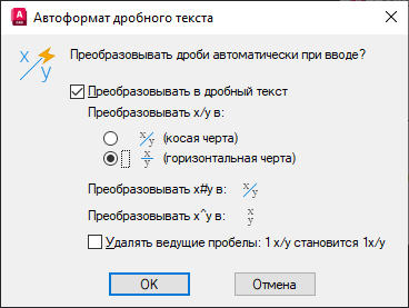 Устанавливает значения по умолчанию для символов, автоматически преобразуемых в дробь.