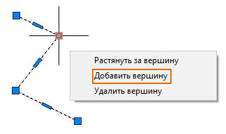 Вершина добавляется к полилинии, удлиняя ее от выбранной конечной ручки.