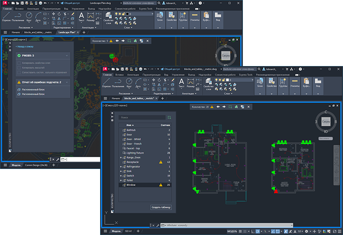 - Подсчет экземпляров всех блоков. На палитре «Количество» можно показать все подсчитанные блоки на текущем чертеже и управлять ими.