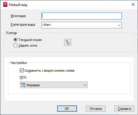 Для вида модели и вида на листе указывается ПСК для сохранения с новым видом.