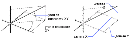 В пространстве модели изменения расстояний и углов компонентов X, Y и Z измеряются в 3D пространстве относительной текущей ПСК. При выводе значения расстояния используется текущий формат единиц.