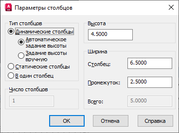 Диалоговое окно "Параметры столбцов"