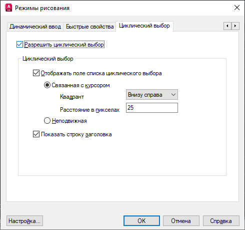 Управление включением элемента циклического перебора (системная переменная SELECTIONCYCLING).