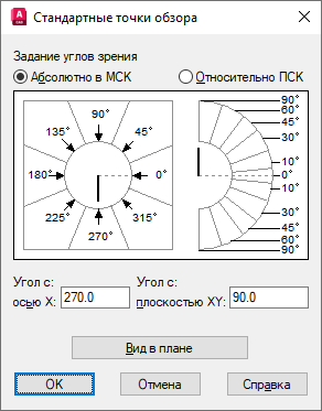 Устанавливает вид в плане выбранной системы координат.