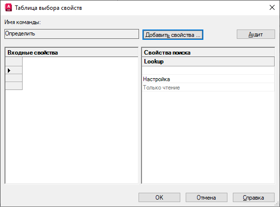 Создание и изменение таблицы выбора для пользовательских свойств в определении динамического блока.