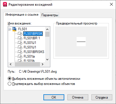Если в списке присутствует несколько вхождений, необходимо выбрать из них внешнюю ссылку или блок для редактирования. Допускается одновременное редактирование только одного объекта.
