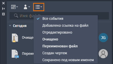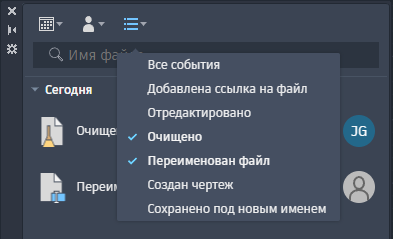 Если в чертежах зарегистрировано много событий, можно отфильтровать их на палитре, чтобы просмотреть конкретные события для определенного чертежа. Например, может потребоваться просмотреть события в определенном диапазоне времени, только ваши события или конкретные типы событий. В данных учебных чертежах представлено не особо много событий, но давайте посмотрим, как работает их фильтрация.