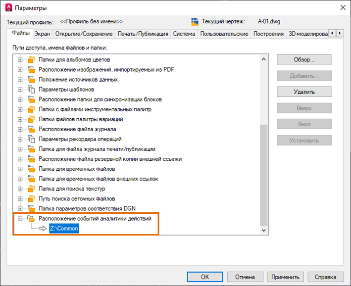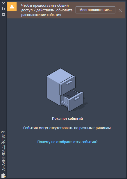 После того как все участники проекта зададут одно и то же расположение для функции «Аналитика действий», все события чертежа будут записываться в это расположение и считываться из него.